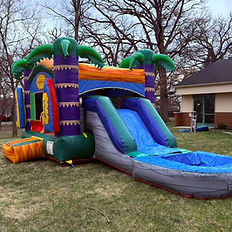 Bring tropical fun to your party with our exciting Hawaiian Combo Bounce House with Slide! This colorful inflatable features a vibrant island theme with palm trees, surfboards, and bright tropical colors that create the perfect party atmosphere. Outside the Aurora area: $15 extra